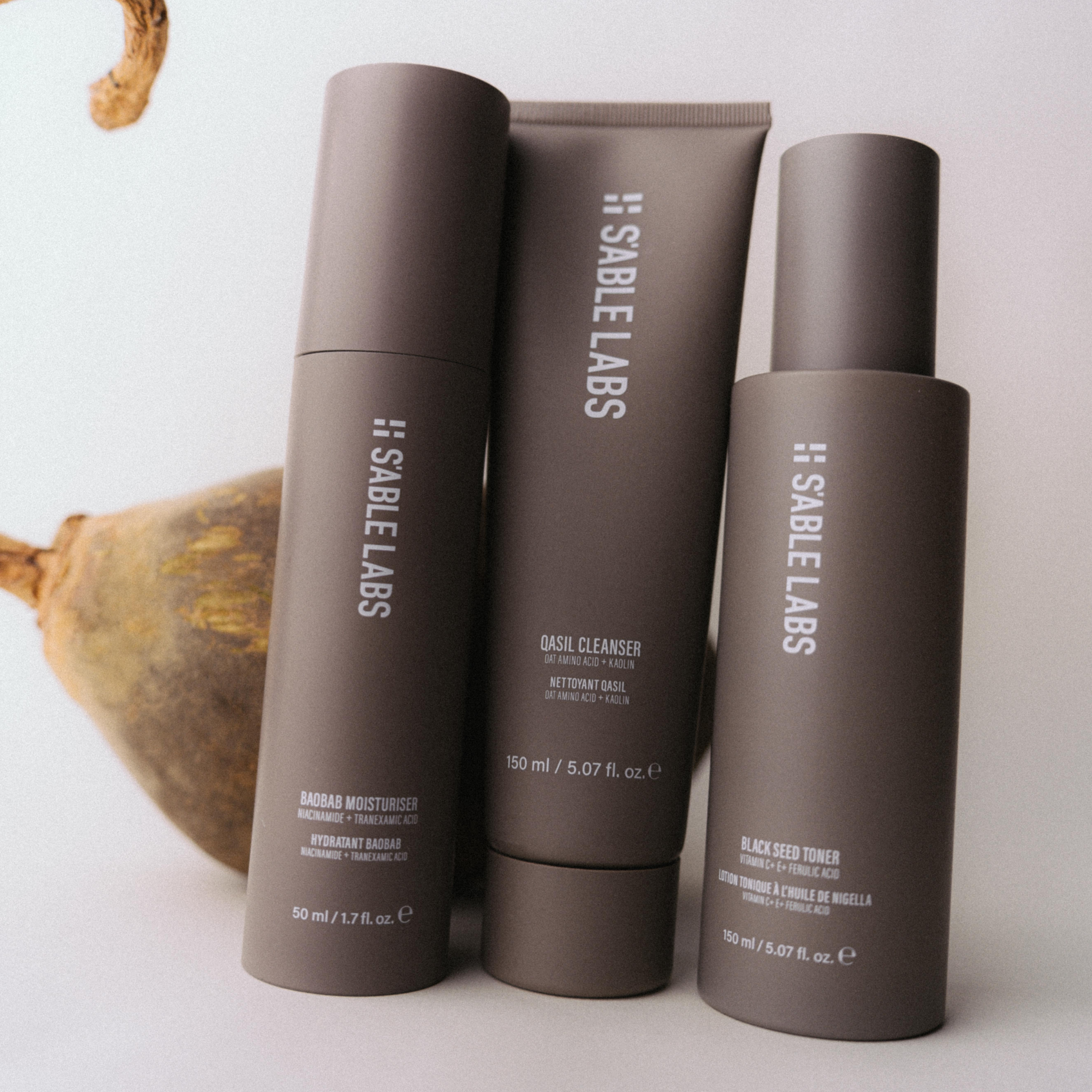 The essential S'ABLE Labs skincare routine; a trio of efficient yet powerful formulas, crafted with modern science and potent African botanicals to combat and prevent hyperpigmentation using our exclusive HyperPrevent™ technology.