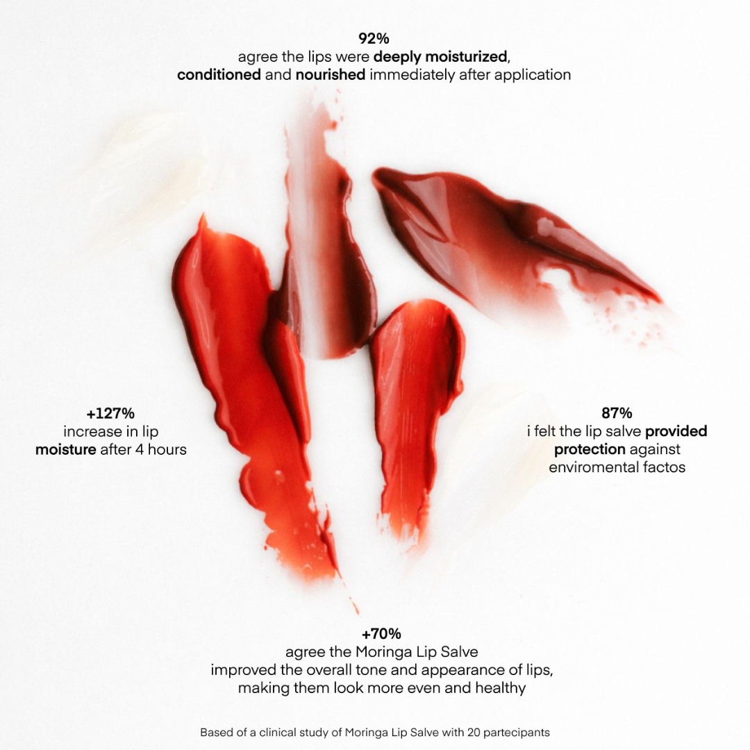 87% Agree the Moringa Lip Salve improved the overall tone and appearance of my lips, making them look more even and healthy.